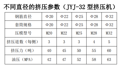7.壓力一定要結(jié)合擠壓參數(shù)表擠壓。(附參考擠壓參數(shù)表)